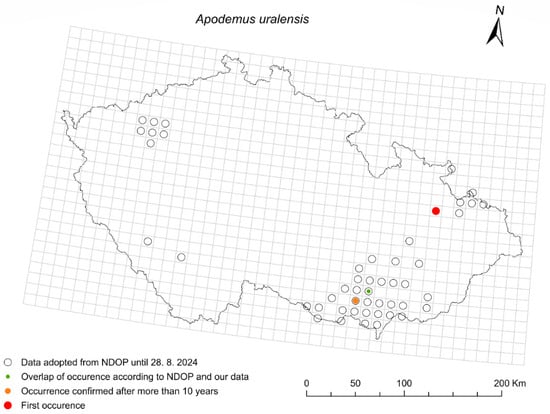 The paper summarizes recent observations of uncommon small terrestrial mammals (Eulipotyphla, Rodentia) in the Czech Republic and compares them with known ranges. In total, 5038 records of 13 species (Apodemus agrarius, Apodemus uralensis, Arvicola amphibius, Crocidura leucodon, Crocidura