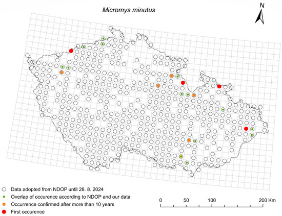 The paper summarizes recent observations of uncommon small terrestrial mammals (Eulipotyphla, Rodentia) in the Czech Republic and compares them with known ranges. In total, 5038 records of 13 species (Apodemus agrarius, Apodemus uralensis, Arvicola amphibius, Crocidura leucodon, Crocidura suaveolens, Glis glis, Micromys minutus, Microtus subterraneus, Muscardinus avellanarius, Neomys fodiens, Neomys milleri, Sicista betulina, and Sorex alpinus) were included. A database was created, including at least date, location, species, and observer for each record. For each species, a list of quadrats (KFME) with confirmed occurrence, along with selected records of the species in a given quadrat (oldest and youngest record, lowest and highest elevation), is included. These data were then compared with existing knowledge. The results show range expansion of thermophilic, steppe, and agricultural landscape species such as Apodemus agrarius, Apodemus uralensis and Crocidura leucodon into areas previously uninhabited by them. On the contrary, Sorex alpinus, one of the most typical mountain species, has not been observed in the southernmost part of its former range for the last 15 years. This study highlights the importance of monitoring the changes in the abundance of all species. These findings are important not only for managing and protecting biodiversity, but also for understanding the impacts of environmental change.