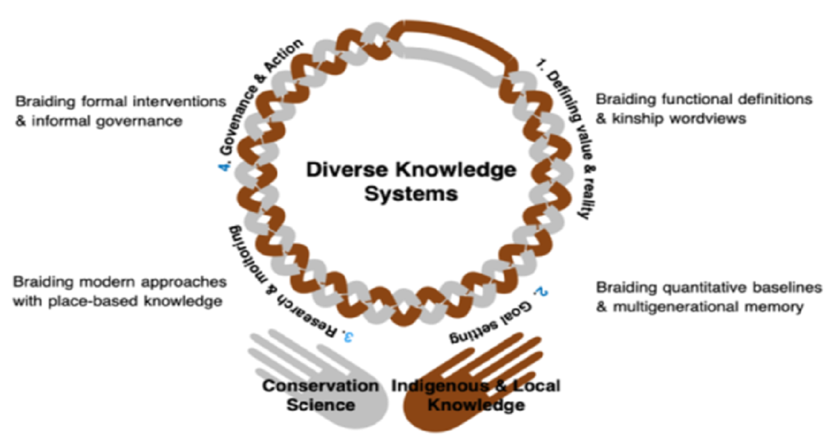 Achieving global biodiversity targets requires us to move beyond exclusionary management models. As environmental challenges accelerate, effective stewardship demands the equitable validation and integration of diverse knowledge systems. A defining challenge for conventional conservation practice is to transition from Western scientific approaches toward a pluralistic praxis that braids diverse knowledge systems in order to build equitable partnerships with local communities.