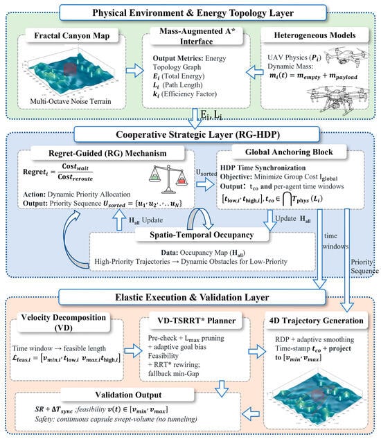 RG-HDP-VD: A Physics-Aware Cooperative Trajectory Planning Framework for Heterogeneous Multi-UAVs