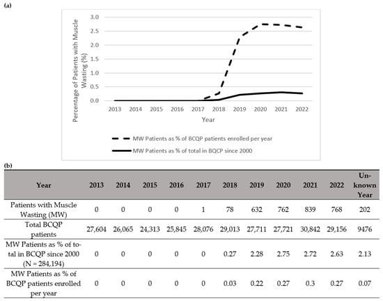 Background: Burn patients can suffer prolonged hospital stays, infections, and wound breakdown. Given the complexity of burns, it is often difficult to determine which underlying factors contribute to complications. The Burn Care Quality Platform (BCQP) is the largest database of burn patients globally available, and it accounts for underlying or coinciding disease conditions present in burn patients. Muscle wasting conditions, such as sarcopenia, cachexia, and protein malnutrition, are suspected of causing worse outcomes. Prior analysis of BCQP data (2000–2017) demonstrated that patients with muscle wasting had prolonged hospitalization and adverse outcomes. Methods: Building on our previous work, we extended logistic regression analysis to BCPQ data through 2022 to assess whether reporting and outcomes had changed. Results: Updated BCQP data demonstrated a statistically significant increase in mortality in cachexia vs. non-muscle wasting patients (Odds Ratio [OR]: 2.2 [95% Confidence Interval (CI): 1.3–3.7], p = 0.004), but no increase in mortality was seen with protein malnutrition (OR: 1.1 [95% CI: 0.93–1.35], p = 0.239). However, the diagnosis rate of muscle wasting conditions decreased by 53% since the previous analysis, suggesting a potential under-reporting of these diagnoses in BCQP patients. Conclusions: Burn care could be augmented by better diagnosis of underlying conditions that predispose to muscle wasting.