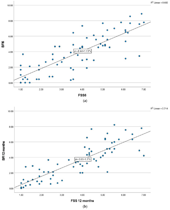 Background: A burn injury is a complex trauma often followed by complications, one of which is fatigue. The objective of this study was to validate the Fatigue Severity Scale (FSS) in an adult Swedish burn cohort. Methods: A prospective cohort study was performed at the Burn Center at Uppsala University Hospital in Uppsala, Sweden. All patients who were registered for follow-up 6 months after their burn injury were asked to participate. Included patients completed questionnaires at 6 and 12 months postburn. Psychometric properties were investigated, including internal consistency (Cronbach’s alpha) and concurrent validity, comparing FSS with the Brief Fatigue Inventory (BFI), which was considered to be the “gold standard.” Convergent validity was investigated among the fatigue assessments and quality of life, depression/anxiety, and daily activities. Results: In total, 70 included patients attended both visits. FSS demonstrated high internal consistency (Cronbach’s alpha: 0.96 at both timepoints). There was high concurrent validity between FSS and BFI on both occasions (Spearman’s rho: 0.816 and 0.863, respectively), and the convergent validity was strong. Conclusions: The result indicates that the two fatigue scales correspond well to each other and that the FSS, therefore, is a valid and reliable assessment of fatigue in adult Swedish burn patients.