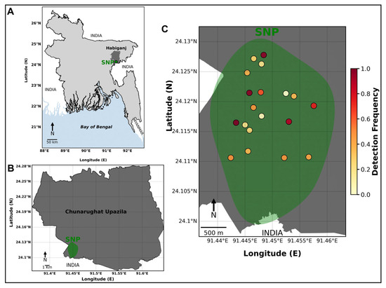 The monitoring of wildlife habitats is crucial for effective conservation efforts, particularly where biodiversity faces significant threats. This study aimed to monitor the biodiversity of wild mammals in a protected area (PA) of Northeastern Bangladesh, with a particular focus on detecting previously unrecorded