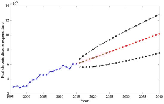 The mounting prevalence of chronic diseases poses a substantial public health and economic burden, particularly in aging societies such as the United States. Focusing on both direct healthcare expenditure and indirect costs such as productivity loss, this study examines the economic burden of chronic non-communicable diseases (NCDs) from 1996 to 2040. A multidisciplinary approach is employed, integrating panel data models to identify determinants of real healthcare spending across ten chronic conditions and an Autoregressive Integrated Moving Average (ARIMA) forecasting model to estimate future expenditure as a share of national Gross Domestic Product (GDP). The estimations are based on data available for the period 1996–2015, which serve as the foundation for projections up to 2040. The results show that chronic diseases—especially cardiovascular conditions, diabetes, and respiratory illnesses—are associated with persistent increases in public and private healthcare costs and substantial reductions in labor productivity. Disparities by age, income, and race further intensify this burden. Projections suggest that the financial impact of chronic diseases will escalate significantly through 2040, exceeding the rate of GDP growth. Our study concludes that indirect costs are often underestimated in many models, which limits accurate fiscal planning. We thus underscore the need for integrated economic health forecasting tools to support sustainable, equity-focused health policies. These findings support calls for increased investment in prevention, coordinated chronic care, and more robust data systems to anticipate long-term health and economic outcomes.