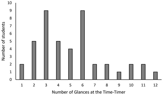 This study investigated the impact of visual timers on 7- to 9-year-old students’ mathematical performance, anticipatory anxiety related to math assessment, and on-task behavior during a timed assessment. Building on previous findings that visual timers reduce anxiety and improve performance, this research further examined how children interact with a Time-Timer and whether its use influenced off-task behaviors. Forty-four children completed a timed mathematical assessment under two counterbalanced conditions: with and without a visible Time-Timer. Results replicated the anxiolytic effect of visual timers indicating significantly lower anticipatory anxiety levels prior to task onset in the Time-Timer condition. However, no significant difference in math performance was observed between conditions. Notably, the Time-Timer condition was associated with a significant reduction in inattentive and motor instability behaviors. This effect was particularly pronounced for children at higher risk for Attention Deficit Hyperactivity Disorder, as measured by the Conners’ questionnaire. Furthermore, engagement with the Time-Timer was highly heterogeneous; while some children never consulted the device, 25% of participants monitored it with high frequency (i.e., more than seven times in a five-minute period). While this study supports the use of visual timers for reducing anxiety and promoting on-task behaviors, it highlights the need to understand individual differences in usage.