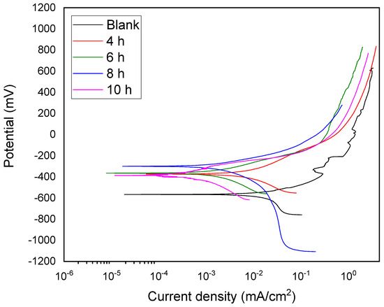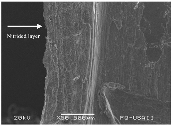 In this work, plasma nitriding was carried out to improve the corrosion resistance of API 5L X70 steel. The process was conducted at different treatment times, 4, 6, 8, and 10 h, to determine which one provides greater resistance to corrosion. The conditions under which the nitriding was carried out were as follows: a mixture of 20% N2 and 80% H2 at 3 torr pressure, a current of 2.6 × 10−6 A, a voltage of 360 V, and the temperature inside the plasma chamber was 550 °C. The blank and nitrided materials were characterized using dispersive energy spectroscopy and scanning microscopy to study their morphology and chemical composition. In addition, open potential circuit, electrochemical impedance spectroscopy, and potentiodynamic polarization curves in simulated soil solution were performed to evaluate the materials’ corrosion resistance. The treatment achieved at 10 h presented the greatest corrosion resistance, reducing the corrosion current density up to three orders of magnitude. The thickness reached 678.75 µm for this condition.