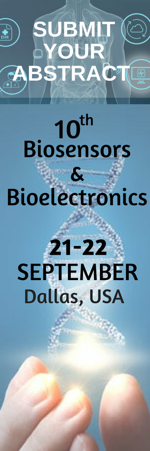 Biosensors and Bioelectronics 2018 Organizing Committee, is a great pleasure and an honor to extend you a warm invitation to attend 10th International Conference and Exhibition on Biosensors & Bioelectronics during September 21-22, 2018 at Dallas, Texas, USA. Theme: “Research, Design, Development, and Application of Biosensors and Bioelectronics" Biosensors and Bioelectronics 2018 conference explores new advances and recently updated technologies in the field of Biosensors, Bioelectronics, Nanosensor, Biomedical and Bioengineering and deals with recent advances in security and sensing, photonic sensor technologies, Biosensors for imaging and many more. Biosensors Congress 2018 provides a unique platform for people who conduct their research work in this field. The conference captivates individuals both from commercial and academic worlds yet establishes a firm link and binds us together with the recent updated accomplishments. Conference sessions on: • Biosensors • Biosensors Applications • Transducers in Biosensors • DNA Chips and Nucleic acid Sensors • Bioelectronics • Photonic sensor technologies • Biosensing Technologies • Biosensors for Imaging • Environmental Biosensors • Bioinstrumentation • Advancement in Nanotechnology • BioMEMS/NEMS • Gas Sensors If interest to present your research and showcase, kindly submit your abstract for review purpose. Speaker / Plenary / Workshop / Poster slots are available. For more information, kindly contact us through our conference website.