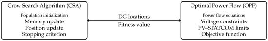 The proliferation of distributed photovoltaic (PV) generation introduces significant operational challenges for distribution networks, including voltage instability and elevated technical losses. While modern PV inverters capable of static synchronous compensator (STATCOM) functionality—forming PV-STATCOM systems—offer a promising solution, their optimal integration remains a complex mixed-integer non-linear programming (MINLP) problem. This paper addresses this gap by proposing a novel hybrid evaluator–optimizer framework for the optimal daily placement and sizing of PV-STATCOM devices. The framework synergistically integrates the metaheuristic crow search algorithm (CSA) for global exploration of discrete device locations with a high-fidelity, multi-period optimal power flow (OPF) model—implemented efficiently in Julia with the Ipopt solver—for continuous operational evaluation and constraint validation. The methodology incorporates realistic 24 h load and solar irradiance profiles. Extensive validation on standard IEEE 33- and 69-bus test systems demonstrates the efficacy of the proposed approach. The results indicate substantial reductions in daily energy losses—by up to 70.4% and 72.9% for the 33- and 69-bus systems, respectively—and corresponding operational costs, outperforming recent state-of-the-art metaheuristic and convex optimization methods reported in the literature. The CSA also exhibits robust convergence and repeatability across multiple independent runs. This work contributes a computationally efficient, open-source planning tool that leverages modern optimization solvers, providing a scalable and effective strategy for enhancing the power quality and economic performance of PV-rich distribution networks.