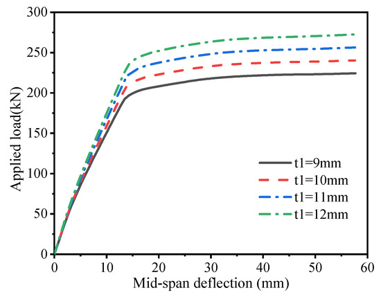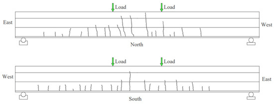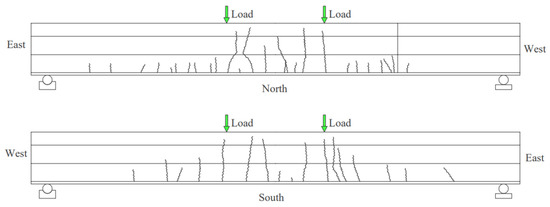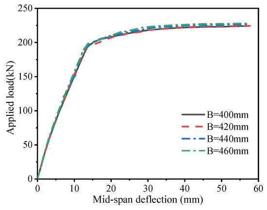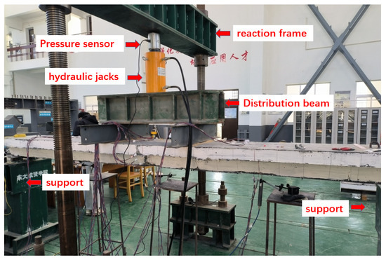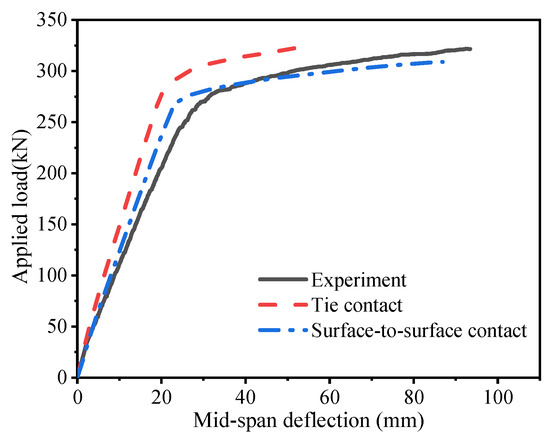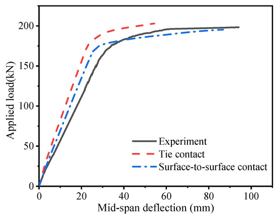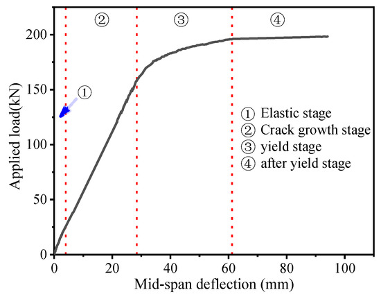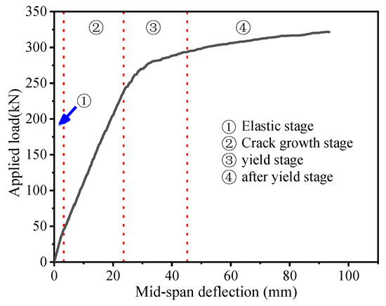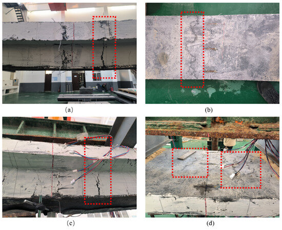 Through static bending tests on two full-scale specimens of a new steel grating–UHPC (ultra-high-performance concrete) composite bridge deck, the load–displacement curves, crack propagation, strain distribution, and failure characteristics were analyzed. According to the experimental results, a numerical model was established using ABAQUS software