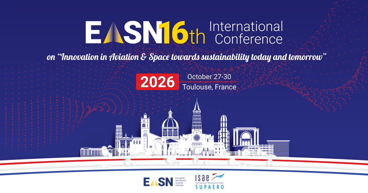 The 16th EASN International Conference, a premier event dedicated to “Innovation in Aviation & Space Towards Sustainability Today and Tomorrow,” is co-organized this year by the EASN Association and the ISAE-SUPAERO and will be held from 27th to 30th October 2026 in Toulouse, France.