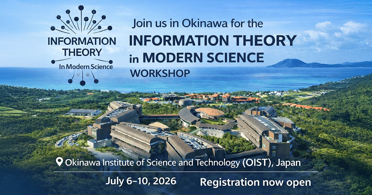 The Information Theory in Modern Science (ITMS) Workshop will take place at the Okinawa Institute of Science and Technology (OIST), Japan, on July 6–10, 2026, immediately following ISIT 2026.