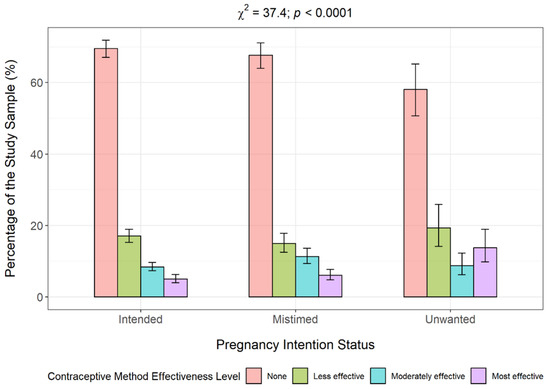 Background/Objectives: Unintended pregnancy is linked to an increased risk of subsequent unintended pregnancies, but its impact on contraceptive use and intention remains vastly understudied. This study assessed whether unintended pregnancy independently influences women’s stages of behavior change for contraceptive use and the