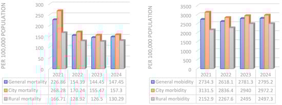 Background/Objectives: Cardiovascular diseases (CVDs) remain a leading cause of mortality worldwide, with a particularly high burden in Central Asian countries. Despite ongoing urbanization, rural populations constitute a significant demographic in this region, yet epidemiological data stratified by urban and rural residence are limited