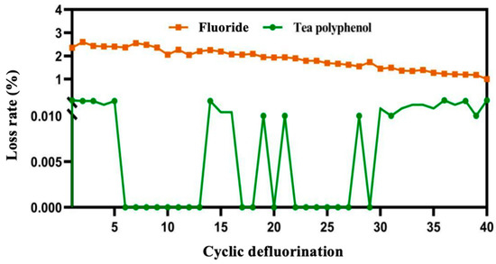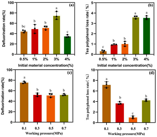 Brick tea is a type of post-fermented food that involves microorganisms. Long-term consumption of brick tea exposes consumers to high fluoride levels, which can adversely affect their health. This study explored the feasibility of selective defluorination of Qingzhuan brick tea through membrane separation technology, and pilot production was conducted to produce defluorinated instant brick tea. The concentration of tea polyphenols increased by more than 10 times after nanofiltration, demonstrating the high selectivity of nanofiltration membranes toward fluoride. Defluorination trends were studied at different initial material concentrations (0.5–4%) and operating pressures (0.1–0.5 MPa) under cyclic defluorination. Defluorinated instant brick tea products were also industrially prepared using 300- (DF-300) and 1000-Da (DF-1000) membranes, followed by vacuum freeze-drying. The DF-1000 and DF-300 products exhibited a defluorination rate of 51.46% and 67.96%, respectively. The products have excellent characteristics in terms of color, aroma, and flavor quality, as well as solubility. Gas chromatography–mass spectrometry indicated that the volatile components in the defluorinated instant brick tea were slightly different from those in the original tea, but the key aroma and flavor characteristics of the defluorinated brick tea remained unchanged. Membrane separation provides technical support for the large-scale production of low-fluoride post-fermented tea.