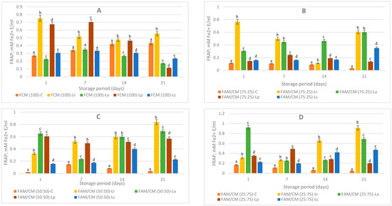 Lactobacilli are important probiotic groups recognized for their numerous health-promoting properties. This study investigated how four probiotic strains, Lacticaseibacillus rhamnosus (Lr), Lactobacillus acidophilus (La), Lactiplantibacillus plantarum (Lp), or Lacticaseibacillus casei (Lc), affected post-acidification, viable cell counts (VCCs), total phenolic and flavonoid contents (TPCs
