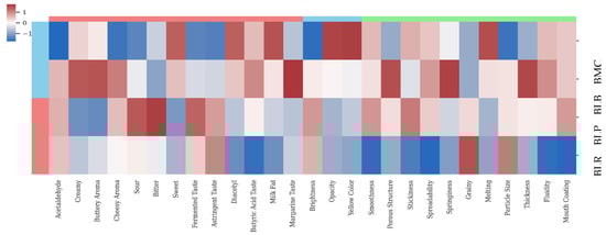 This study aimed to investigate the effects of Levilactobacillus brevis, Lacticaseibacillus paracasei, and Lacticaseibacillus rhamnosus strains isolated from Mihalic cheese, also known as “weeping cheese”, on fermentation kinetics, microbial viability, and textural and aromatic properties of the butter matrix. The effects of the isolates were determined on acidification kinetics (Vmax, Tvmax, pHvmax), viability proportion index (VPI), textural parameters (firmness, work of shear, stickiness, work of adhesion), and volatile aroma compounds (GC-MS) formation. This study found that the BLR sample containing Lacticaseibacillus rhamnosus maintained its limited viability under acidic stress conditions despite its high fermentation rate and low pHvmax values. The BLP sample containing Lacticaseibacillus paracasei exhibited high viability due to its low acidification rate and limited pH change. Determining the chemical classes to which the aroma compounds in the BLP sample belonged revealed a composition rich in fatty acids. The BLB sample containing Levilactobacillus brevis produced a high ΔpH value and an aroma profile rich in aldehyde compounds. Examination of the macro-structural properties of the butter samples revealed that the sample containing Lacticaseibacillus rhamnosus, similar to the control sample (BMC), was more compact and rigid during storage. In contrast, samples containing Lacticaseibacillus paracasei and Levilactobacillus brevis had a softer/spreadable texture. These findings demonstrate the potential of lactic acid bacteria isolates from the traditional Mihalic cheese microbiota as biological catalysts for the development/improvement of texture, aroma, and sensory quality in high-fat dairy products and for the industrial production of products modified to meet consumer preferences.