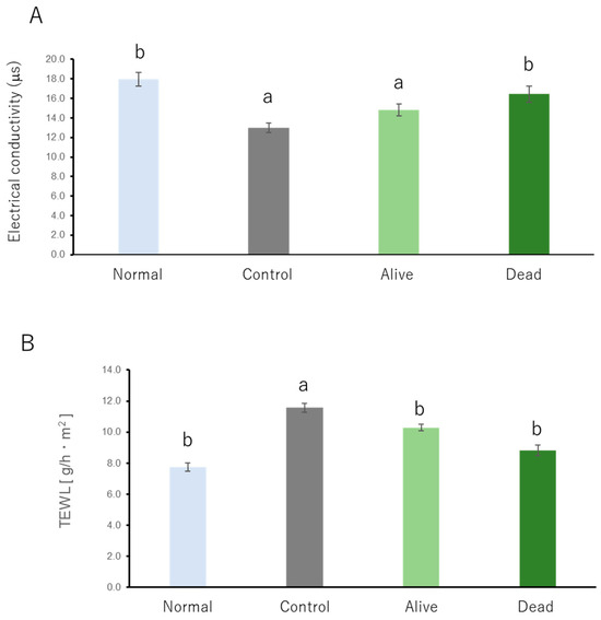 Investigation of the influence of alive or dead dietary lactic acid bacteria, specifically Lactobacillus gasseri, on mice fed a tyrosine-rich diet was conducted in this study. Mice fed a tyrosine-rich diet exhibited increased p-cresol levels in the serum and cecum and deteriorated skin characteristics in terms of skin moisture and transepidermal water loss. These conditions were partially ameliorated by the intake of lactic acid bacteria. To gain insight into the mechanism, the intestinal microbiota of mice fed lactic acid bacteria was examined. The results revealed an increase in bacteria including genus Faecalibacterium and Lactobacillus in fecal samples from mice fed lactic acid bacteria. Muribaculaceae was most associated with the added group of alive or dead L. gasseri. These findings indicate that lactic acid bacteria inhibit the conversion of tyrosine to p-cresol in the colon, thereby ameliorating skin disorders.