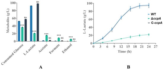 Heyndrickxia coagulans is widely used for industrial L-lactic acid production, but carbon catabolite repression (CCR) and its link to fermentative metabolism remain poorly understood. A ccpA deletion mutant (ΔccpA) and a complementation strain (C-ccpA) were constructed to investigated the
