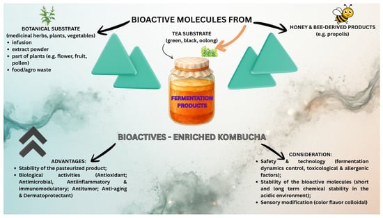 Augmenting Kombucha’s Health Benefits with Plant and Honey Bioactive Molecules Enrichment