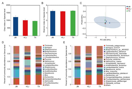 The current understanding of microbiota–flavor correlations in Chinese sourdough steamed bread is predominantly derived from the central provinces, with comparatively limited investigation in northeastern and northwestern regions. This study bridges this gap by analyzing traditional starters from Heilongjiang (HLJ) and Ningxia (TX) versus