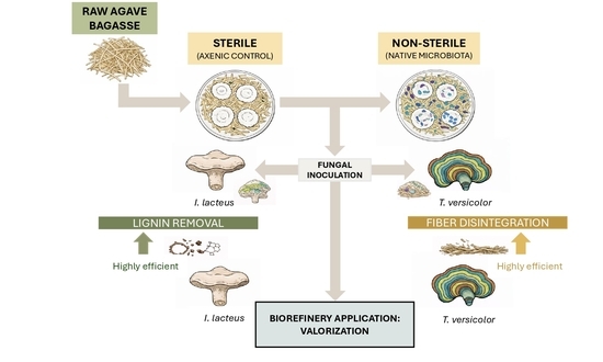 Functional Differentiation and Structural Disruption of Agave tequilana Bagasse by Lignocellulolytic Fungi Under Sterile and Non-Sterile Substrate Conditions