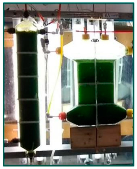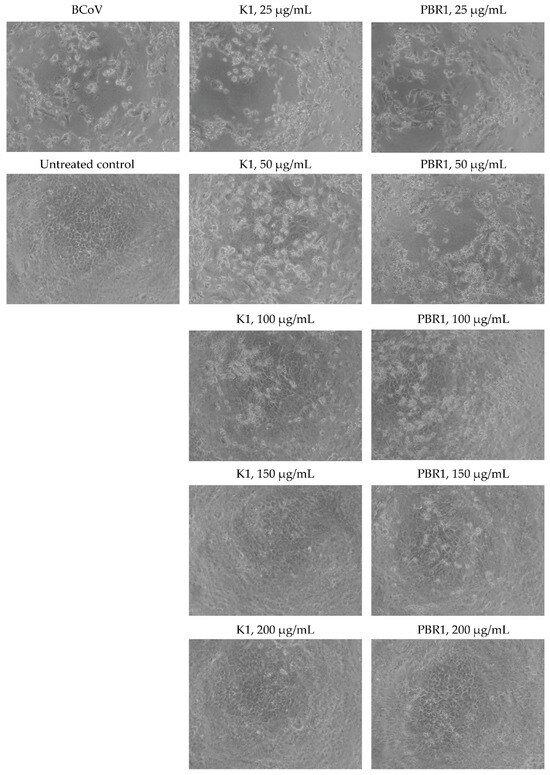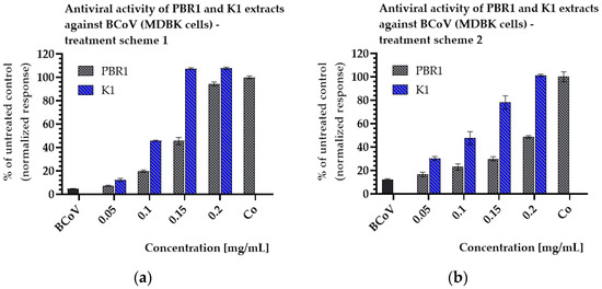 Coronaviruses are worldwide-distributed RNA viruses with zoonotic potential and the ability to jump from one host species to another, including humans. Even after the COVID-19 pandemic, the search for new, biologically active substances with anti-coronavirus activity continues to be a critical milestone for human health protection. In the framework of a complex engineering strategy, we cultivated the microalgal species Scenedesmus acutus in two different innovative types of flat-plate photobioreactors (PBR1 and K1) for CO2 utilization and biomass production with special features. Isolated extracts from the microalgal biomass of each one were compared for their anti-coronavirus potential. The design of both PBRs allows a hydrodynamic regime to achieve best fluid flow distribution in their sections, therefore providing the optimal so-called flashing light effect. Of course, this is achieved under well-controlled operational conditions. A strain of beta coronavirus 1 (BCoV, bovine coronavirus) replicated in MDBK cells was used as an in vitro model for the evaluation of the antiviral activity of both extracts. The cell viability, number of survived BCoV particles, and cytopathic effect were evaluated after pre-incubation of the virus with the extracts or direct treatment. The extracts’ samples exhibited evident antiviral activity—extract 1 (from PBR1) in concentrations ≥ 200 µg/mL and extract 2 (from K1) in concentrations ≥150 µg/mL. The ddPCR result revealed significant diminishment of the BCoV particles in samples treated with higher concentrations of the extracts. The phytochemical analysis for certain main groups of compounds (flavonoids, polyphenols, carotenoids, and lipids) showed some differences for both extracts, which could be a possible reason for the observed difference in the antiviral activity. In conclusion, the innovative PBRs are a good platform for studying microalgal growth kinetics by applying different stress conditions from hydrodynamics and mass transfer subsystems. Both extracts showed promising potential for the isolation of metabolites with antiviral activity against BCoV and could be an object for future pharmacological investigations.