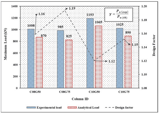 Corrosion continues to be a major challenge affecting the service life, safety and durability of steel-reinforced concrete (RC) structures. The deterioration of steel not only reduces structural capacity but also increases long-term maintenance costs. To address this limitation, glass fiber-reinforced polymer (GFRP) is being investigated as an alternative to conventional steel reinforcement, particularly in aggressive environments. This work examines the behavior of composite columns reinforced with GFRP bars with steel stirrups. Sixteen square columns of 150 × 150 × 850 mm dimensions, cast with M30 grade concrete, were reinforced using either GFRP or steel, while varying stirrup spacing and bar diameters. Experimental observations showed that GFRP reinforcement contributed about 10–12% of the ultimate capacity of the columns. A marked enhancement in load carrying capacity of GFRP-RC columns was obtained with closer stirrup spacing. The axial strength of GFRP-reinforced columns was comparable to steel-reinforced ones with the same main reinforcement ratio. Ductility increased by 12% when stirrup spacing was reduced. The difference between analytical and experimental values ranged between 12% and 15%, whereas experimental and numerical results differed by 10–12%. Based on these results, a modification factor derived from IS 456:2000 is proposed for predicting the capacity of ‘GFRP-reinforced’ columns. The outcomes clearly highlight the potential of GFRP reinforcement as a durable, sustainable and practical substitute for conventional steel reinforcement.