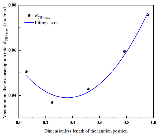 This study examines the influence of ignition position on explosion characteristics in linked vessels with a methane concentration gradient, aiming to support the safety of industrial combustible gas storage systems. A numerical simulation method was adopted, using a vessel-pipe-vessel linked device. Explosion parameters including pressure, pressure rise rate, temperature, and flame propagation speed were analyzed, with mechanism insights drawn from methane consumption rate and Reynolds number. Results indicate that maximum explosion pressure always occurs in the small vessel, decaying exponentially with increased dimensionless length of the ignition position, and ignition in the large vessel results in significantly higher pressure. The maximum pressure rise rate, maximum temperature rise rate, maximum flame speed, and maximum methane consumption rate each follow a quadratic trend, first decreasing and then increasing with the dimensionless length of the ignition position. Flame propagation is dominated by pipe acceleration, peaking at one end of the pipe near the small vessel at velocities up to 600 m/s. Turbulence intensity increases linearly with the dimensionless length of the ignition position and is highest when igniting in the small vessel. This research clarifies the influence mechanism of ignition position and provides theoretical support for the explosion prevention and control of linked vessel systems with concentration gradients.