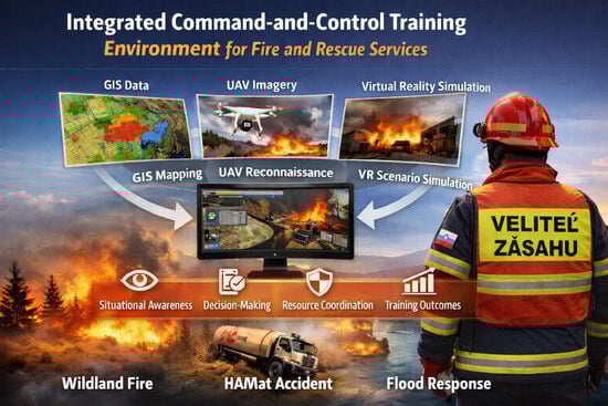 Effective command-and-control (C2) decision-making during emergency response relies on timely access to spatially accurate information. It also requires a clear understanding of evolving incident conditions. Traditional fire-service training methods provide limited opportunities to rehearse complex, high-risk, and large-scale incidents under realistic yet safe conditions. This exploratory pilot study presents the design and experimental evaluation of an integrated training environment that combines geographic information system (GIS) data, unmanned aerial vehicle (UAV) imagery, and immersive virtual reality (VR) simulations to support C2 training for fire-service incident commanders. The system was assessed through scenario-based exercises involving 23 active incident commanders across three representative emergency scenarios: wildland fire, hazardous materials transport accident, and flood response. The training scenarios were based on real geographic areas in central Slovakia, using authentic terrain, land-cover, infrastructure, and hydrological GIS layers to ensure spatial realism of the simulated emergency environments. Pre-training and post-training questionnaires were used to evaluate perceived training realism, preparedness for command tasks, decision-making confidence, and the perceived usefulness of digital spatial information tools. Results indicate a substantial post-training increase in perceived realism and preparedness, with strong positive correlation between these variables (Spearman ρ = 0.71, p < 0.001). Participants reported improved confidence in assessing incident conditions, prioritizing operational tasks, and allocating resources under dynamically evolving scenarios. The study evaluates perceived spatial situational understanding derived from multi-source spatial information integration rather than directly measured situational awareness using standardized psychometric instruments. UAV imagery was found to be particularly valuable for rapid incident size-up, while GIS layers primarily supported spatial planning, hazard delineation, and resource coordination; VR served as a unifying platform for fusing these information sources into a coherent operational picture. Scenario-specific differences in tool usefulness were observed, reflecting the spatial and risk characteristics of each incident type. Overall, the findings indicate that integrated GIS–UAV–VR environments provide a realistic and scalable complement to traditional fire-service command training, enhancing spatially supported decision-making and preparedness for complex emergency response. Given the single-group pretest–posttest design, limited sample size, absence of a control group, and reliance on perceived evaluation measures, the results should be interpreted as indicative rather than as generalizable evidence of training effectiveness.