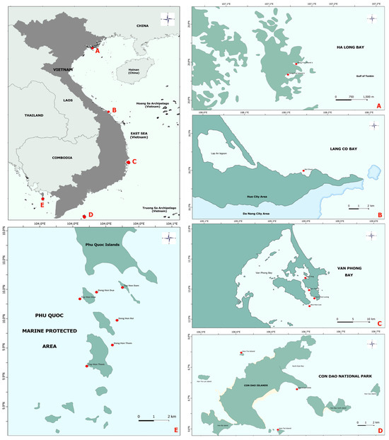 Echinoderms are marine invertebrates that play important roles in structuring marine benthic ecosystems. DNA barcoding has become a valuable tool for species identification; however, reference DNA barcode libraries for echinoderms remain incomplete. This study aims to: (i) develop a COI-5′ reference dataset for echinoderms from Vietnam by integrating DNA barcodes with morphological data; (ii) evaluate species resolution and barcode gaps using multiple analytical approaches; (iii) assess the consistency of species assignments from BOLD and GenBank for echinoderms collected in Vietnam; (iv) make barcode data publicly available to support global reference database development. Thirty-two echinoderm specimens representing 16 species were analyzed for COI-5′ sequences, and BLAST assignments were highly concordant with those from GenBank and BOLD. Integrative validation confirmed that all taxa were monophyletic in the Neighbor Joining Tree, formed single OTUs in Cluster Sequences, and exhibited clear barcode gaps greater than 3% to the nearest-neighbor species. These results provided species-level resolution for 75% and genus-level resolution for 90% of the records. The dataset, spanning four classes, eight orders, and eleven families, enhances barcode coverage and contributes records (ProcessIDs. BINs; GenBank accessions) to public repositories. This study delivers the first curated COI-5′ reference library, supporting regional baselines for taxonomy, conservation, and biodiversity assessment.