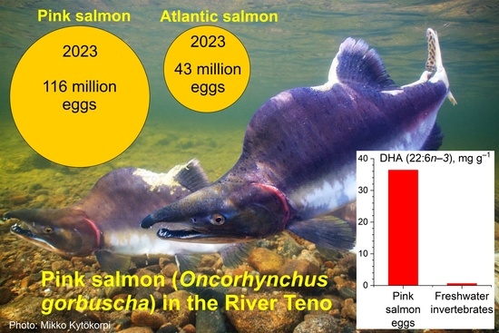 Atlantic salmon (Salmo salar) populations in the Arctic River Teno (Tana) and other North Atlantic rivers have declined at the same time as pink salmon (Oncorhynchus gorbuscha) have begun to spawn extensively in these rivers in odd-numbered years. In the River Teno, especially, the number of one-sea-year Atlantic salmon ascendants has decreased. In this short review, we assess, based on current information, how the abundance of pink salmon may weaken the survival of Atlantic salmon. Our hypothesis is based on recent evidence from Atlantic salmon in the Baltic Sea showing that the high marine lipid content in the diet of Atlantic salmon post-smolts impairs their growth and survival and is manifested in low numbers of ascendants and in poor thiamine (vitamin B1) status in both juvenile and spawning Baltic salmon. The high energy density of lipids increases the need for thiamine in the metabolism, and the high content of highly unsaturated fatty acids (n–3 HUFAs), like docosahexaenoic acid (DHA, 22:6n–3), in marine fish lipids increases the rate of lipid peroxidation, which consumes thiamine as it acts as an antioxidant against lipid peroxidation. The review presents information that could be used in planning possible future research on the topic.