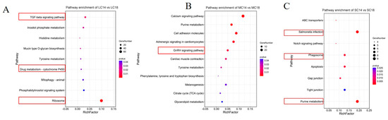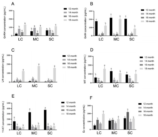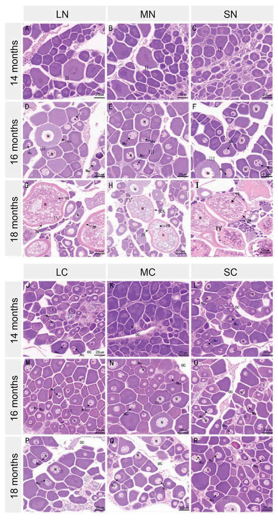 Two rearing systems are used for Plectropomus leopardus: sea-cage culture and the land-based flow-through aquaculture system. Cages approximate natural conditions and yield many high-quality eggs but offer limited control over ovarian development; the land-based system is highly controllable yet ovaries develop slowly and seldom reach full maturity. We compared these systems by analyzing growth–gonad relationships, monthly hormone profiles (GnRH, E2, GnIH), and hypothalamic transcriptomes in 14- and 18-month-old females. Within each system, body weight did not predict gonadal stage and energy allocation was size-independent. In cages, ovaries reached full maturity with normal histology; in tanks, gonads of all sizes remained at stage III, indicating arrested development. Serum GnRH and E2 displayed parallel increases from 12 to 14 months, declined at 16 months and surged at 18 months in both systems, while GnIH fluctuated inversely, suggesting antagonistic control. Transcriptome analysis identified fshr, cyp11a1 and sox17 as key down-regulated genes in tank-reared fish. KEGG (Kyoto Encyclopedia of Genes and Genomes) pathway enrichment implicated GnRH, oxidative phosphorylation, ribosome and Wnt pathways in ovarian progression. These findings elucidate reproductive constraints under artificial conditions and provide molecular targets for controllable breeding of P. leopardus.