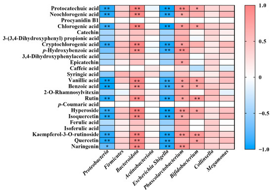 Fructus mume (FM), the processed product of Prunus mume (PM), is a traditional Chinese medicine. The release characteristics and bioactivities of phenolics from PM and FM were compared in the present study. In oral and gastric digestion, both the total polyphenols content released and the antioxidant activities of PM were much higher than those of FM, whereas the opposite trend was observed in intestinal digestion and colonic fermentation. Specifically, during colonic fermentation, the total polyphenols content released of FM was 1.43-fold higher than that of PM, with corresponding antioxidant activities (DPPH and ABTS) of FM being 1.41- and 2.91-fold higher, respectively. Twenty-four individual phenolics were found after gastrointestinal digestions with neochlorogenic acid and chlorogenic acid as the predominant ones. During colonic fermentation, a comparatively higher content of cryptochlorogenic acid and benzoic acid was detected in FM, while a higher content of 3-(3,4-dihydroxyphenyl) propionic acid was detected in PM. Notably, FM has a better effect on regulating the gut microbiota composition than PM, as evidenced by a greater enrichment of beneficial bacteria such as Bifidobacterium and Megamonas, along with a stronger suppression of the pathogenic Escherichia–Shigella. These results provided insights into the digestive properties of polyphenols from PM and FM, indicating that processing of PM into FM potentially enhance its health-improving effects on the colon.