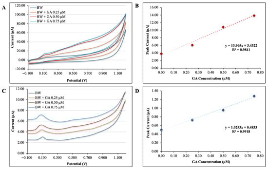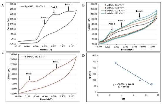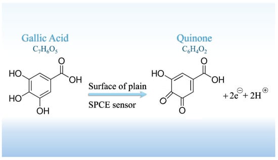 A low-cost screen-printed carbon electrode (SPCE) was used to determine gallic acid (GA) in banana wine (BW). Cyclic voltammetry (CV) showed GA oxidation in Phosphate-Buffered Saline (PBS, pH 7.0) with 10% ethanol was diffusion-controlled, forming a quinone species. This supporting electrolyte was applied