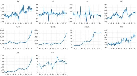 The study documents the impact of the external sector on movements of the Pakistan Stock Exchange (PSX), covering conventional and Islamic indices. Selected variables include international trade, foreign investment, remittances, oil, gold, and currency markets, as well as the KSE-100 and KMI-30 indices.