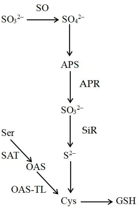 Two poplar varieties with different resistance to sulfur dioxide were subjected to different concentrations of SO2 fumigation treatment. Young and mature leaves of Purui poplar (resistant) vs. 74/76 poplar (susceptible) were used to measure the changes in the activity of enzymes and metabolite content. Among the five key enzymes involved in sulfur metabolism and sulfur metabolites, APR, SO enzyme, GSH, and sulfate content have the greatest impact on young leaves of Purui, followed by 74/76 young leaves. The results show that for both Purui and 74/76 poplar, young leaves have stronger sulfur metabolism ability than mature leaves, indicating that young leaves have stronger SO2 resistance. Purui has stronger sulfur metabolism ability than 74/76 poplar, especially reflected in their young leaves. The comparison between young and mature leaves, as well as the comparison between resistant and susceptible varieties, mutually confirms that sulfur metabolism in leaves is an important mechanism for sulfur dioxide resistance.
