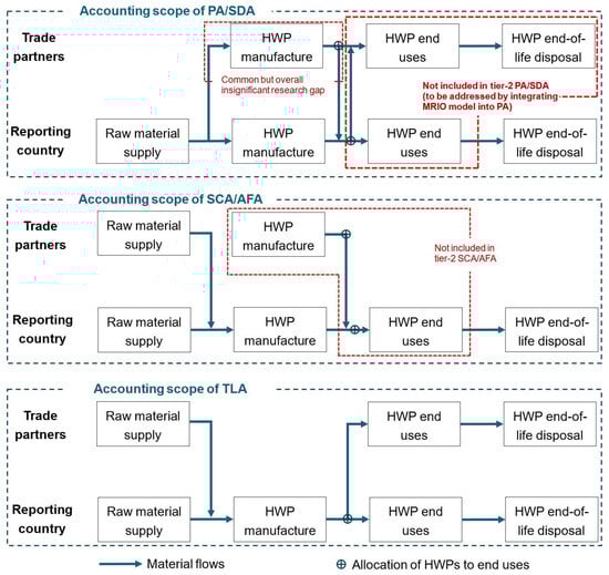 The carbon pool of harvested wood products (HWPs) is an essential part of the national greenhouse gas inventory. Developing a Tier-3 method for the Intergovernmental Panel on Climate Change (IPCC) Production Approach (PA) enhances the accuracy of HWP carbon balance assessments and removal estimates. This is crucial as the PA is a mandatory IPCC approach. A major challenge for developing a Tier-3 PA is the absence of an effective way to allocate HWP production to domestic and overseas end uses, precluding the application of Tier-3 PA in most countries in the world. Here, we integrated the Eora multi-regional input–output (MRIO) model, which effectively allocates HWPs to these end uses into the PA to create a generalizable Tier-3 PA. Using China-produced HWPs from 1990 to 2020 as a case study, we report that these HWPs accumulated a carbon stock of 3376 MtCO2e by 2020 and provided a carbon sink of 221 MtCO2e yr−1 from 2016 to 2020. Construction, furniture, other solid HWPs, sanitary and household paper, and other paper products accumulated 1244, 226, 1032, 0, and 189 MtCO2e, respectively. China’s trade partners consumed 14% of China-produced HWPs and contributed to 13% of the total carbon stock and 15% of the total carbon sink. The generalizable Tier-3 PA is applicable for countries with limited end-use data, and thus enhances their HWP carbon removal estimates. Our first-ever comprehensive PA-based assessment of overseas HWP consumption and carbon removal supports IPCC methodological improvement and future HWP-related international negotiations and mitigation actions.