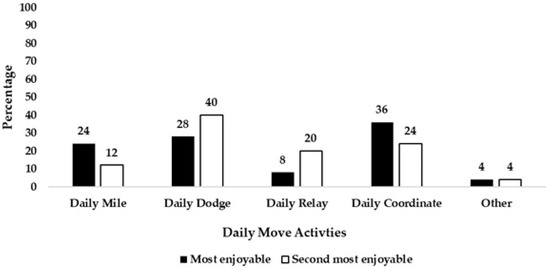 The Daily Move (TDMo) is a modified version of The Daily Mile, a primary school-based physical activity initiative, that provides children greater choice in activities during participation. This study evaluated a teacher-led implementation of TDMo, aiming to assess its sustainability within primary schools. Teachers (N = 60) implemented TDMo with their classes for two 5-week blocks across two school semesters. Data were collected via questionnaires administered at the start and end of each block (Time 1 to Time 4), aligned with the RE-AIM framework’s effectiveness, adoption, implementation, and maintenance elements. Two teacher focus groups (n = 6) and one child focus group (aged 8–9 years; n = 6) were conducted at Time 4. The findings presented in this paper are based only on participants who provided complete questionnaire data at all four timepoints (n = 28). TDMo was perceived to positively impact multiple health metrics across timepoints, including physical fitness (agreement decreased from 92 to 84%), movement proficiency (agreement increased from 84.6 to 96.2%), and attention and concentration (agreement decreased from 96.2 to 92.3%). Teachers reported all children responded positively to its adoption (100%). Children’s involvement in game selection increased significantly from Block One to Block Two (p = 0.01). The main implementation barriers were curriculum demands (agreement decreased from 80 to 72%) and inclement weather (agreement increased from 50% to 53.8%). Most teachers intended to sustain their implementation of TDMo (96.2%). The diverse and novel design of TDMo offers potential holistic health benefits and supports long-term sustainability. The variety of physical activity appears to enhance children’s enjoyment and encourage teachers’ sustained implementation. Recognition of these benefits by teachers and school staff, and their commitment to incorporating movement breaks within a typical school day, may further support sustainability.