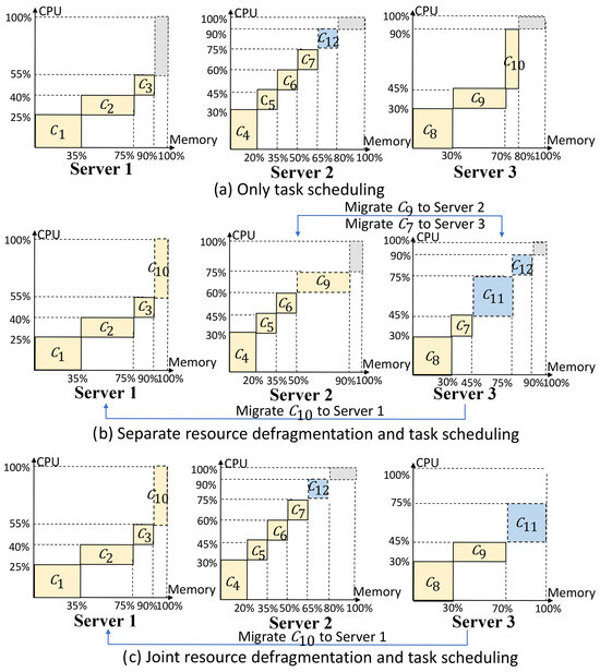 Container-based virtualization has become pivotal in cloud computing, and resource fragmentation is inevitable due to the frequency of container deployment/termination and the heterogeneous nature of IoT tasks. In queuing cloud systems, resource defragmentation and task scheduling are interdependent yet rarely co-optimized in existing