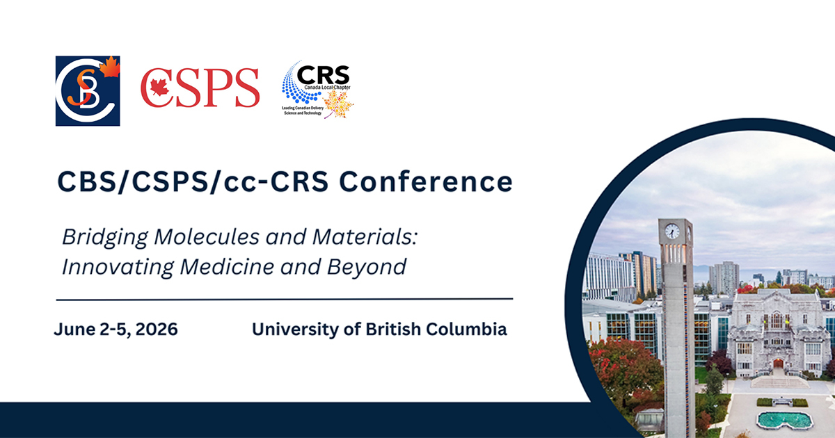 The Canadian Biomaterials Society (CBS), the Canadian Society for Pharmaceutical Sciences (CSPS), and the Controlled Release Society (cc-CRS) are joining forces to host a landmark joint conference at UBC Vancouver. This milestone gathering positions Canada as a hub for global scientific exchange, uniting scientists, trainees, industry leaders, regulators, and international partners at the intersection of biomaterials and pharmaceutical sciences.