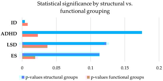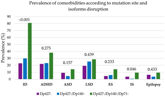 Background: Duchenne/Becker muscular dystrophy (DMD/BMD) is associated with a wide spectrum of brain-related comorbidities. Methods: This retrospective study assesses the neuropsychiatric profile of DMD/BMD patients and the hypothesis of a functional-versus-structural approach of dystrophin gene variants/impaired isoforms in relation to brain comorbidities. Patients with documented