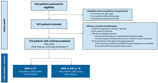 Background/Objectives: In the last decade, non-invasive methods for aneuploidy detection have been explored. The most successful approach involves analyzing the cell-free DNA (cfDNA) released by the embryo into the culture medium. The main objective of this study is to examine the technical feasibility of this new approach called non-invasive PGT-A or niPGT-A. In addition, as an exploratory objective, the impact of the niPGT-A results on clinic outcomes will be assessed. Methods: This was a multicenter, international study that included 716 patients and 2539 blastocysts (ClinicalTrials.gov: NCT03520933). Each embryo was cultured following a specific protocol for niPGT-A. Individual spent blastocyst medium (SBM) and trophectoderm (TE) biopsy were obtained, analyzed, and compared to assess concordance. In a subset of embryos, the comparison also included an inner cell mass (ICM) biopsy. Clinical outcomes from the embryo transfers performed (all based on the TE result) were registered, and results were analyzed blindly regarding the impact of aneuploidies in the culture medium. Results: The concordance rate between SBM and TE was 79.1% (range: 74.1–82.1; cycles with autologous oocytes). This value increased to 87.0% when comparing SBM and ICM. Applying an adapted embryo culture protocol to collect the SBM for niPGT-A did not affect blastocyst quality. Analysis of the embryo transfers performed (n = 265) revealed a trend towards lower miscarriage rate in blastocysts where both TE and SBM were concordant and euploid (13.0%), compared to blastocysts with a euploid TE and an aneuploid SBM (22.2%). Conclusions: The results obtained show a high concordance between the SBM and TE biopsies. Although additional refinement of the technique would further increase niPGT-A’s performance, the results obtained support the potential use of this non-invasive approach for aneuploidy detection. The high concordance of the cfDNA present in the SBM with the corresponding ICM biopsy and the miscarriage rate observed in cases with an aneuploid SBM, despite the euploid TE results, also support niPGT-A’s capacity to assess embryo aneuploidies and its potential as a prioritization system for selecting blastocysts to transfer. This approach could hold special interest in patients with no PGT-A indications, couples that prefer not to biopsy their embryos or those who do not have access to invasive PGT-A.