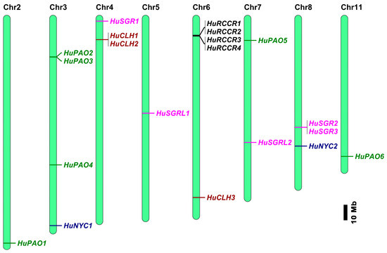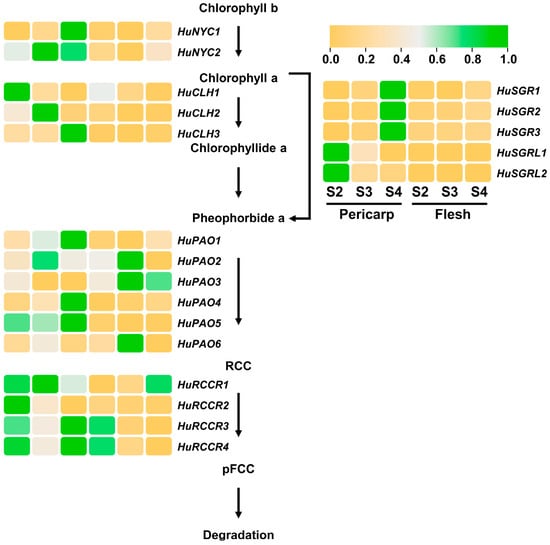 Characterization of Chlorophyll Degradation Genes Reveals Gene Cluster HuSGR2 and HuSGR3 Promoting Chlorophyll Degradation in Pitaya Peel