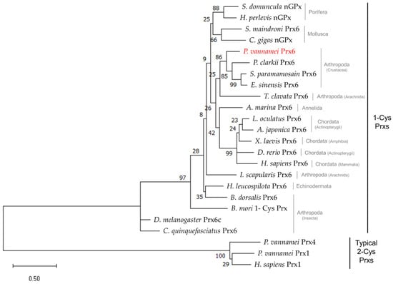 Molecular Characterization and In Vitro Functional Analysis of a 1-Cys Peroxiredoxin 6 from the Whiteleg Shrimp Penaeus vannamei