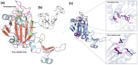 Background/Objectives: Peroxiredoxins (Prxs) are key antioxidant enzymes involved in cellular redox homeostasis. Prx6 is a multifunctional member of the Prx family that has been reported in other organisms to possess glutathione peroxidase and phospholipase A2 (PLA2)-related activities. However, the structural