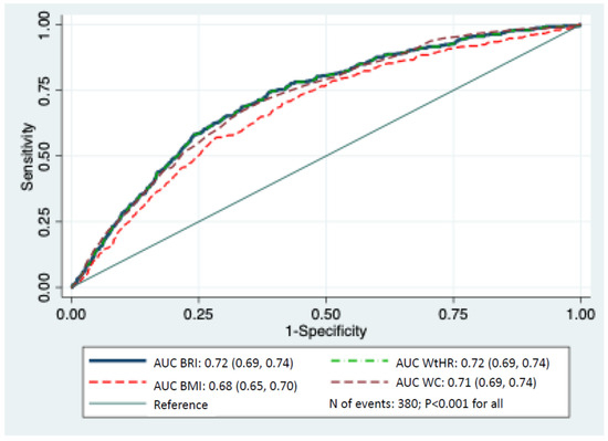 Background/Objectives: Obesity is currently a global pandemic and a major risk factor for the development of chronic disease and increased mortality. Common methods used to define obesity, such as body mass index (BMI), do not accurately reflect body fat content or distribution. Methods: We investigated the prognostic significance of the body roundness index (BRI) on incident death in 12,642 participants (60.2% women, mean age: 39, standard deviation (SD): 12 years) from the “Seguimiento Universidad de Navarra” prospective cohort and compared it to waist-to-height ratio (WtHR) and waist circumference (WC). Participants were monitored through biennial questionnaires. The mean of the baseline BRI was 3.6 (SD: 1.4) units. Multivariable-adjusted Cox models were used to estimate hazard ratios (HR) and confidence intervals (CI) of death. Results: Over a median follow-up period of 11.5 years, 380 participants died (absolute mortality rate 1.74 × 10−3). In multivariable-adjusted models, higher quartiles of BRI were significantly associated with all-cause death, specifically in those ≥ 60 years (Quartile 4 vs. Quartile 1: HR 1.64; 95% CI: 1.00, 2.70). Considering the whole group (all ages), each 2-unit increase in BRI was linked to a 21% higher all-cause mortality risk in both men and women. This association was even stronger for participants aged over 60 years (multivariate adjusted HR for 2-unit BRI increase: 1.31; CI: 1.00, 1.72), while it was not significant when considering only those under 60 years. The associations of z-WtHR and z-WC with incident mortality for all participants were also significant in the fully adjusted model (HRs: 1.14; CI: 1.01, 1.27, and HRs: 1.16; CI: 1.04, 1.30, respectively). Mortality associations assessed using the BRI, WtHR, and WC were superior to associations based on the BMI. Conclusions: BRI shows a linear link with all-cause mortality in healthy adults ≥ 60, while WtHR and WC were also mortality predictors. Thus, lower central fat may help reduce early death risk.