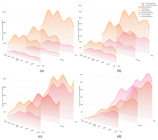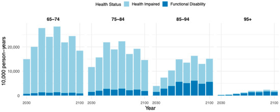 Background: In the era of longevity, many low- and middle-income countries (LMICs) still lack a comprehensive understanding of health deficits among older adults and the care burden associated with “unhealthy longevity”. This study aims to reveal future changes in care needs and pressure in China from 2030 to 2100. Method: This study develops a multistate demographic forecasting framework by integrating a Markov-based health state transition model with the conceptual logic of an age-shift algorithm. Transition probability matrices by age and gender are estimated using nationally representative microdata from the Chinese Longitudinal Healthy Longevity Survey (CLHLS). Baseline population data from the National Bureau of Statistics and WPP 2024 are then used to simulate the evolution of health status among older adults in China from 2030 to 2100. Finally, person-years with disability (PYD) are calculated to evaluate the projected magnitude, structure, and gender disparities of long-term care needs over time. Results: Between 2030 and 2100, the number of disabled older adults in China is projected to follow an inverted U-shaped trend—peaking at 160 million in 2070 and remaining above 115 million by 2100. The share of disabled individuals among older adults rises steadily, from 39.75% to 45.28%. Person-years with disability (PYD) show sustained growth, especially among the oldest-old and women. By 2100, adults aged 95 and older contribute over 20 million PYD—eight times the 2030 level. Gender disparities widen: in 2100, women aged 85–94 account for 53.94 million severe-disability PYD, exceeding men by 8.22 million. These trends reflect mounting structural pressures on China’s long-term care system, increasingly driven by age- and gender-specific disability burdens. Conclusions: If the current disability trend continues unchecked, health risks for older adults will grow over time. In the near future, China will face an extremely heavy care burden and pressure, which will severely impact its economic and social systems. Seizing this critical window for policy action and system improvement is crucial to reducing risks in the longevity era.