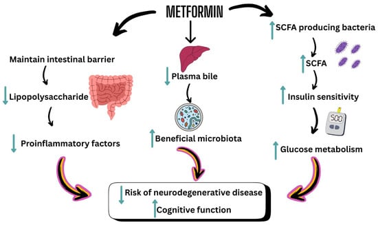 This review provides a comprehensive overview of the complex and dynamic bacterial composition of the human gastrointestinal (GI) microbiota and explores its integral role in the microbiome–gut–brain axis. It discusses the physiological and molecular pathways through which the gut microbiota communicates with the central nervous system, highlighting key barriers that can impede effective signaling along this axis. The review also delves into the influence of microbiota on brain health, including cognitive function, mood regulation, and neuroinflammation. It considers how disruptions in this system—known as dysbiosis—can contribute to metabolic and neurological dysfunction. The central focus of the article is the role of the commonly prescribed antidiabetic drug metformin, not only in regulating glucose metabolism but also in its emerging potential to beneficially modulate the gut microbiome. By doing so, metformin may indirectly support improved brain health. Ultimately, the article seeks to inform both healthcare practitioners and patients about the promising therapeutic implications of microbiome-targeted strategies, particularly metformin, in promoting cognitive and neurological well-being.
