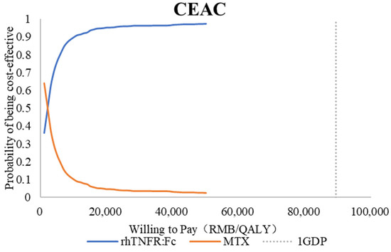 Background/Objectives: To evaluate the cost-effectiveness of recombinant tumor necrosis factor receptor Fc fusion protein compared with methotrexate as first-line therapy for active rheumatoid arthritis in China using evidence from a Chinese head-to-head randomized trial. Methods: A Markov model with 6 months
