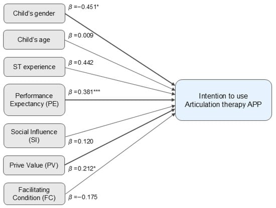 Objective: This study aimed to identify caregivers’ perceptions, preferences, and intentions regarding the use of digital articulation therapy applications for children with DLD. Methods: A cross-sectional online survey was conducted between August and September 2025 among 197 caregivers of children diagnosed with DLD. A 43-item questionnaire was structured into five domains addressing demographics, therapy experience, digital-therapy exposure, and preferences for application-based articulation therapy. Constructs from the Unified Theory of Acceptance and Use of Technology 2, including performance expectancy (PE), social influence (SI), price value (PV), facilitating conditions (FC), and behavioral intention, were analyzed. Results: Most respondents were mothers (96%), and 78.7% of them resided in urban areas. Among them, 84.3% had prior speech therapy experience. Only 15.7% had used educational or therapeutic applications; the main dissatisfaction factors were lack of fun (51.6%) and feedback (19.3%). Caregivers preferred short, engaging sessions (20–40 min per day), video-based (75%) or game-based (64%) content, and feedback every 2 months, with a reasonable monthly cost (20,000–30,000 KRW). Regression analysis revealed that sex (β = −0.451, p = 0.013), PE (β = 0.381, p < 0.001), and PV (β = 0.212, p = 0.034) significantly associated with behavioral intention to use an articulation-therapy application, whereas SI and FC were not significant. Conclusions: Caregivers of children with DLD demonstrated strong willingness to adopt digital articulation therapy applications, particularly when these tools provide meaningful therapeutic outcomes at moderate cost and include motivating, interactive content. Future application design should prioritize treatment functionality, user engagement, and accessibility to enhance adoption and continuity of digital speech-language interventions.